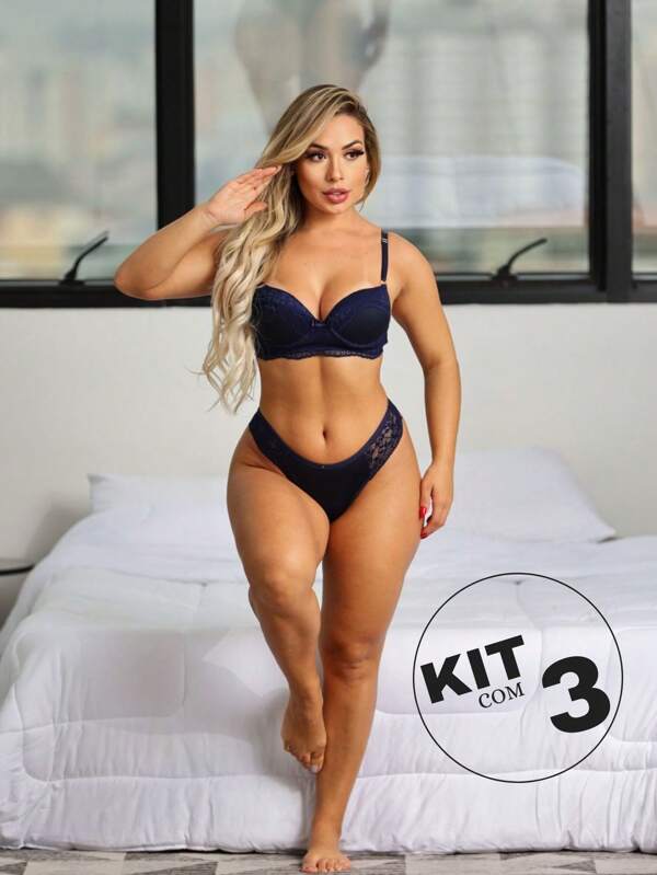 3 Conjuntos de Lingerie Fio Duplo BS2040